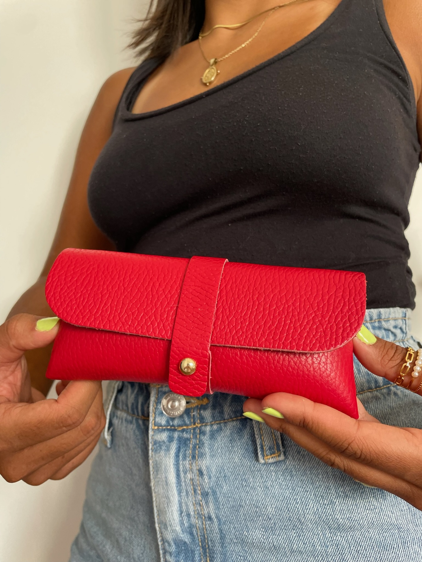 Porque até os teus óculos merecem um toque de classe. ✨ O Porta-Óculos Leonor combina elegância e funcionalidade, protegendo as tuas lentes com muito estilo. Disponível em cores que vão do neutro sofisticado ao brilho festivo, é o acessório que nunca vai passar despercebido na tua mala.