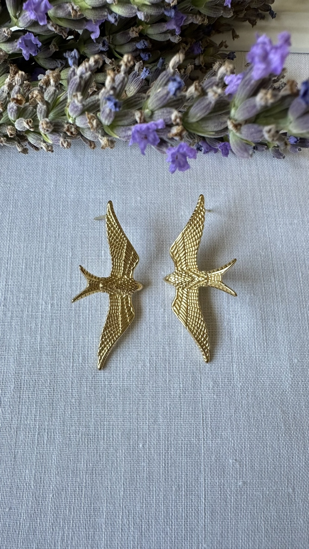 Os Brincos Andorinhas Douradas são leves, cheios de brilho e com um design que grita: "estou livre, linda e a voar alto!"