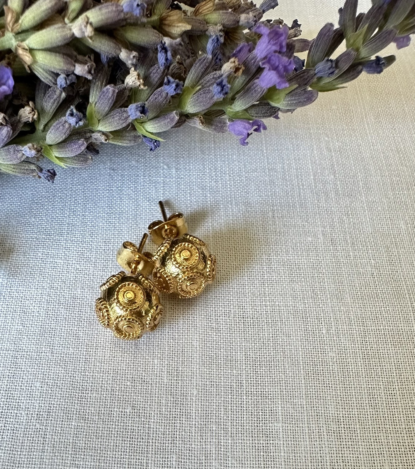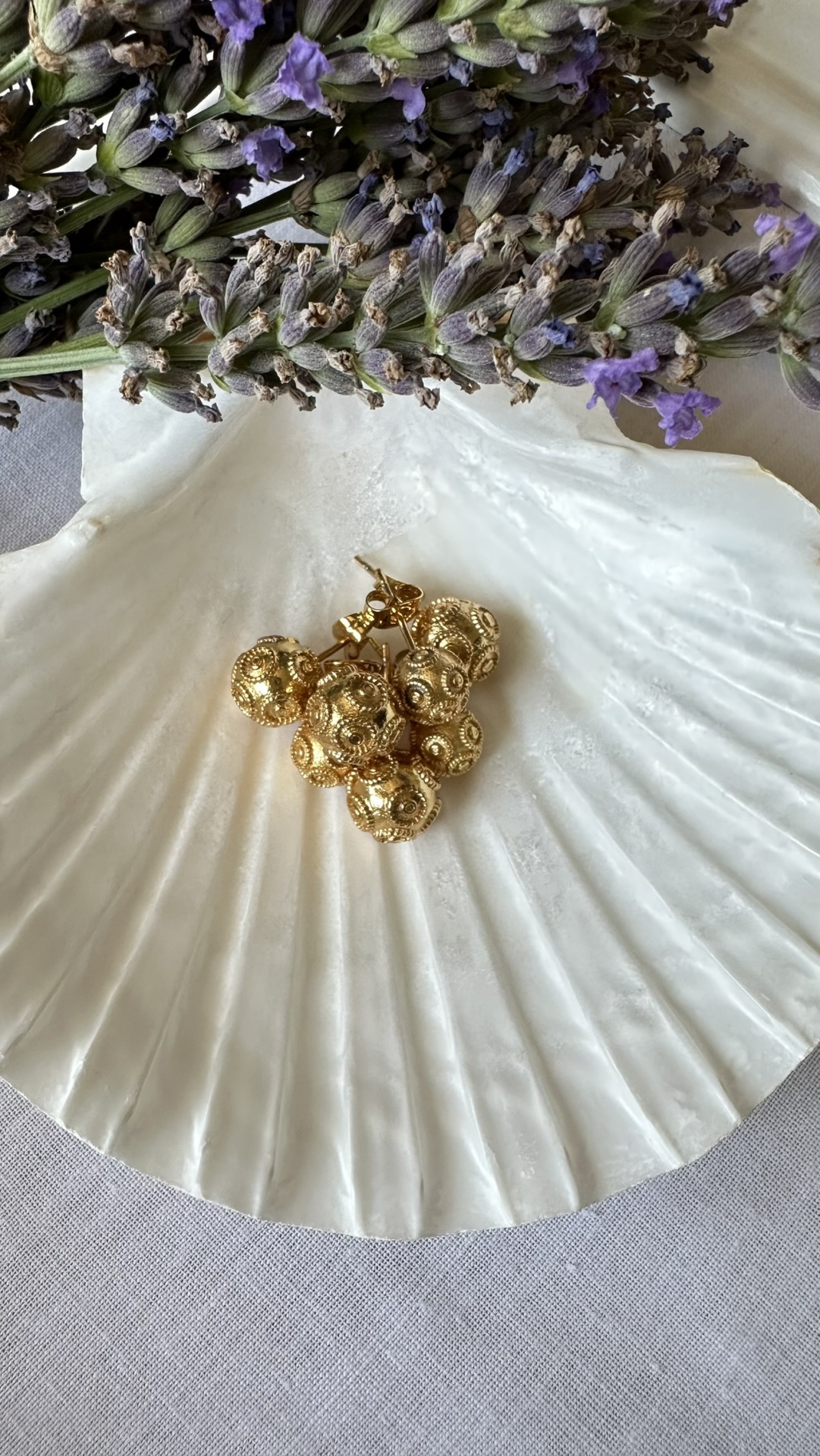 Estes brincos são uma homenagem moderna às icónicas Contas de Viana, símbolo de proteção e amor na cultura portuguesa. Com acabamento em banho de ouro, ganham um brilho irresistível que encaixa perfeitamente num look jovem, fresco e cheio de personalidade.
