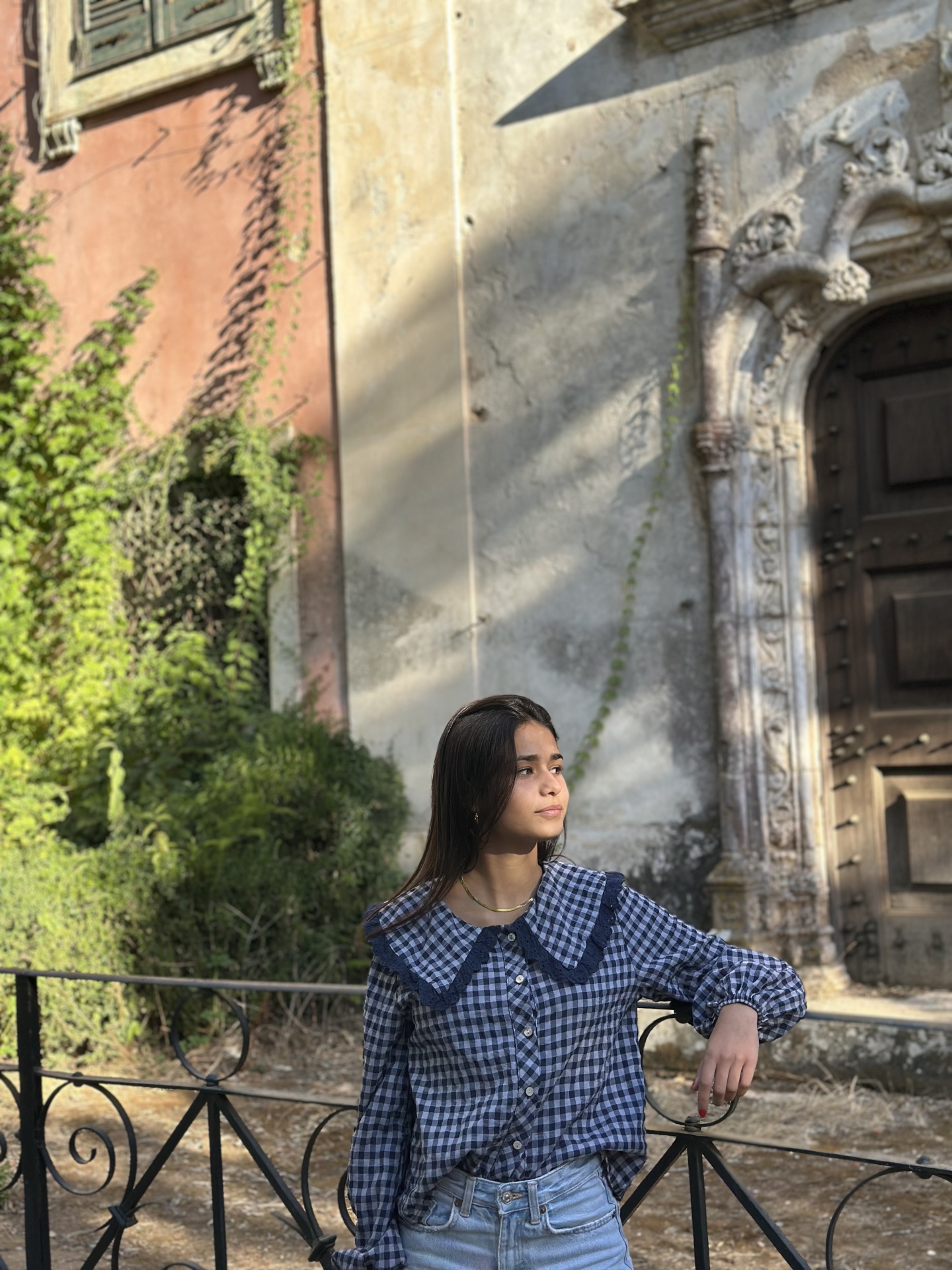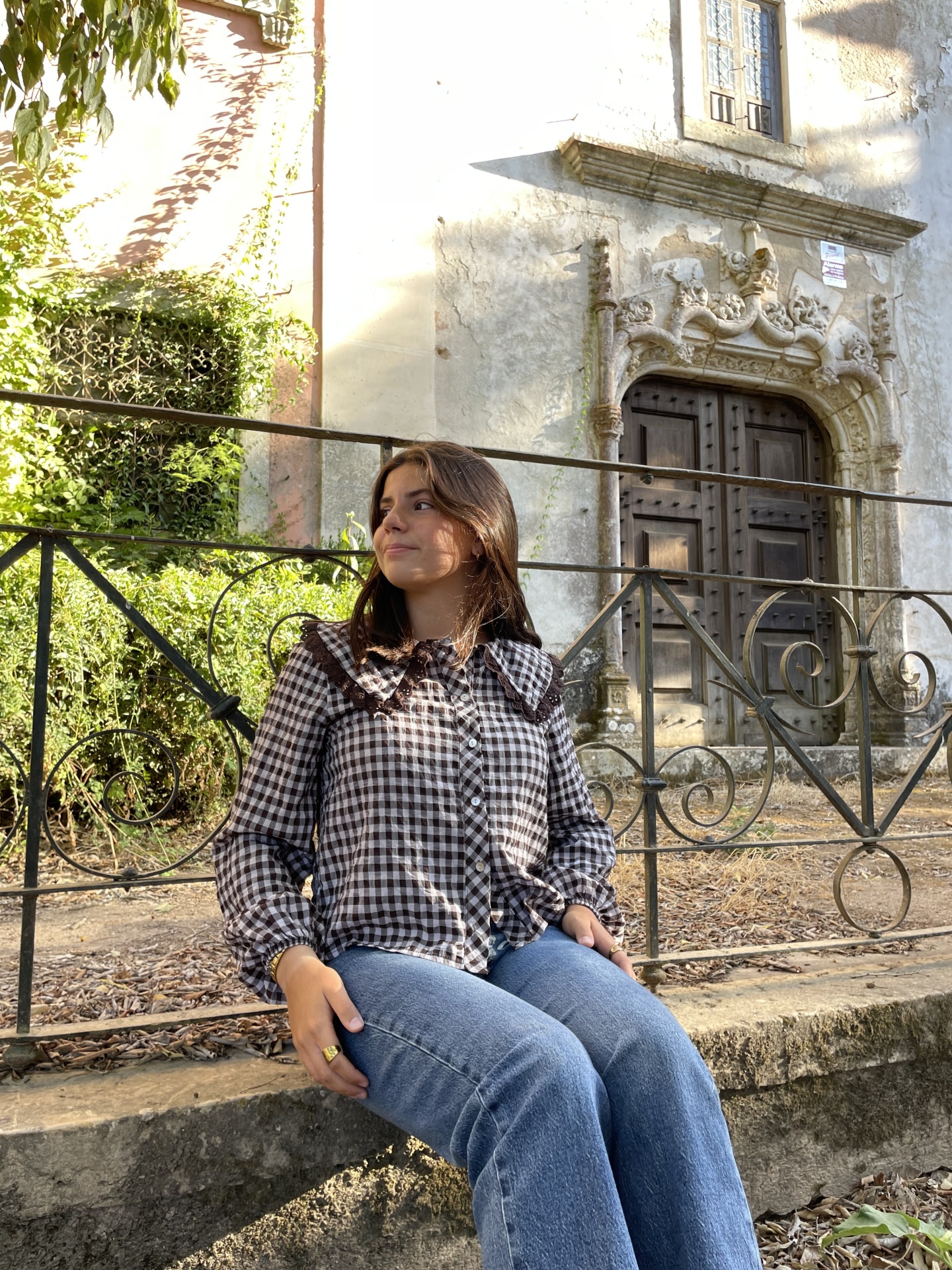 Camisa "Matilde" 22,00 € Desconto de %. Partilhar Cor azul verde castanho Comprar Contactar Camisa de padrão vichy com gola de folhos — perfeita !! Descobre a peça que vai dar leveza e originalidade ao teu guarda-roupa! Tags camisa vichycamisa folhoscamisas femininascamisas jovenscamisa casualcamisa estilo descontraídcamisa com golaroupa femininamoda jovemlook casualcamisa tendência