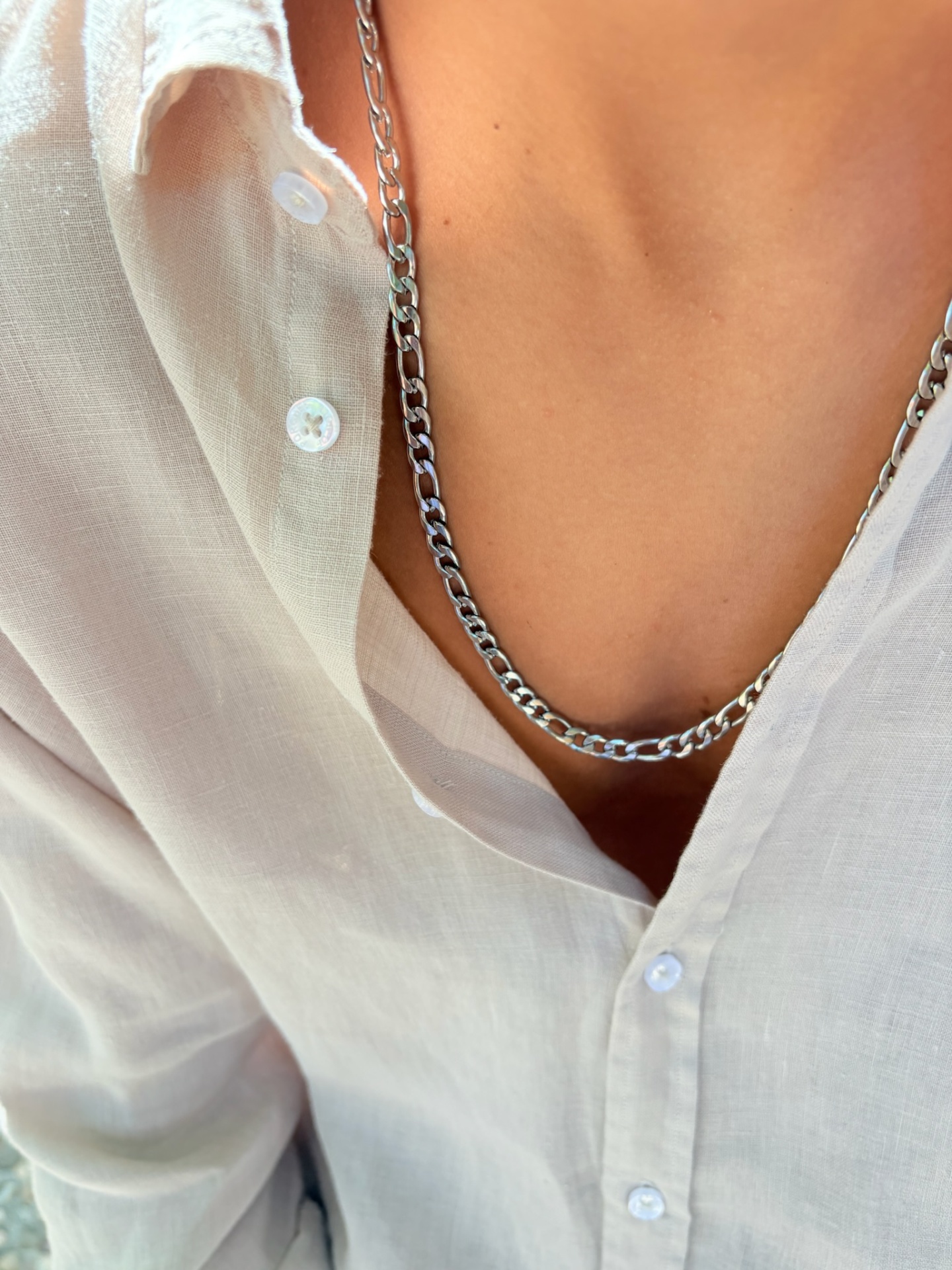 A Formentera é aquela corrente com presença — simples, direta e cheia de atitude. Com elos largos e acabamento brilhante, ela traz uma estética limpa e marcante, perfeita para o dia ou para sair à noite com estilo.