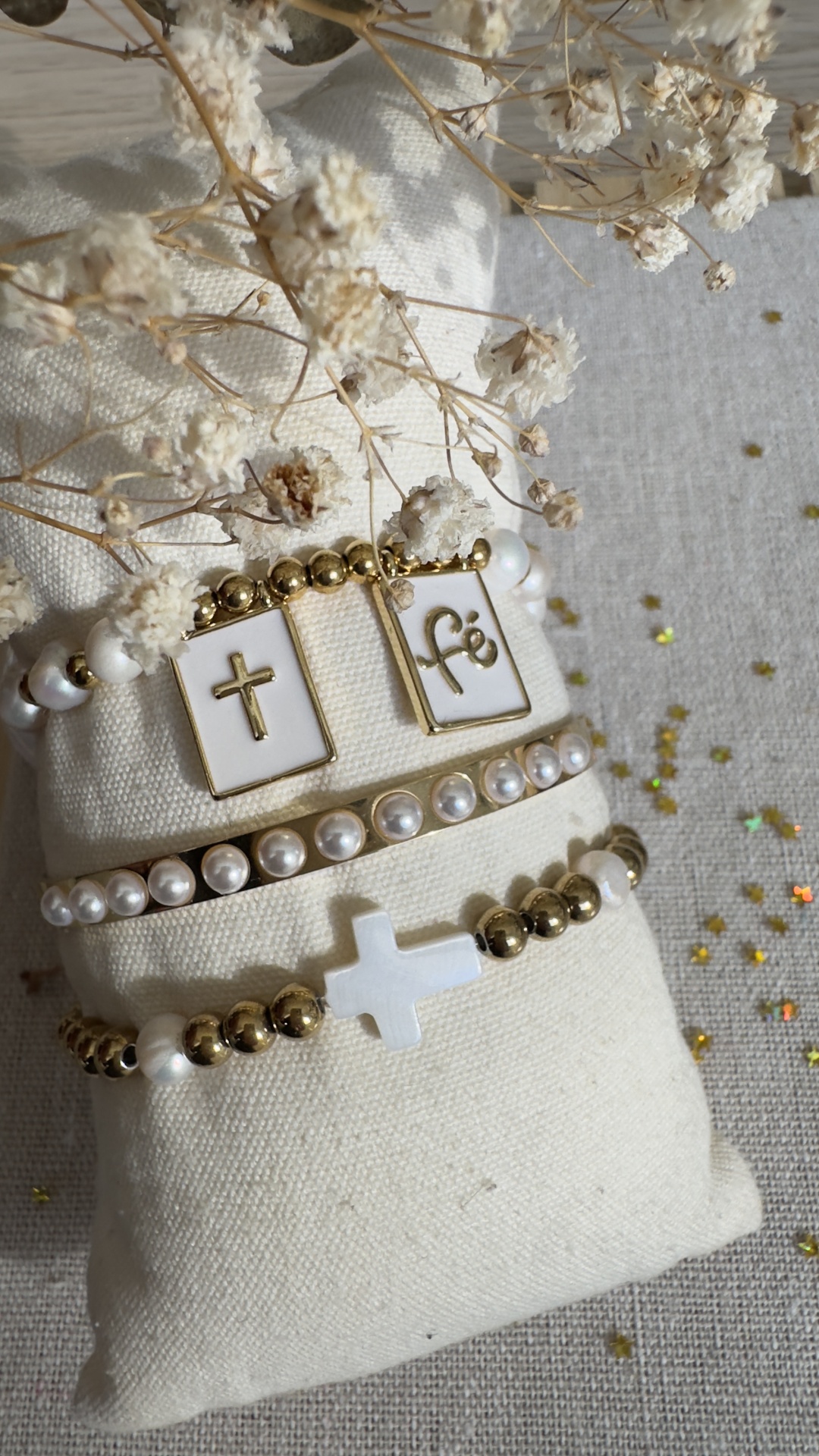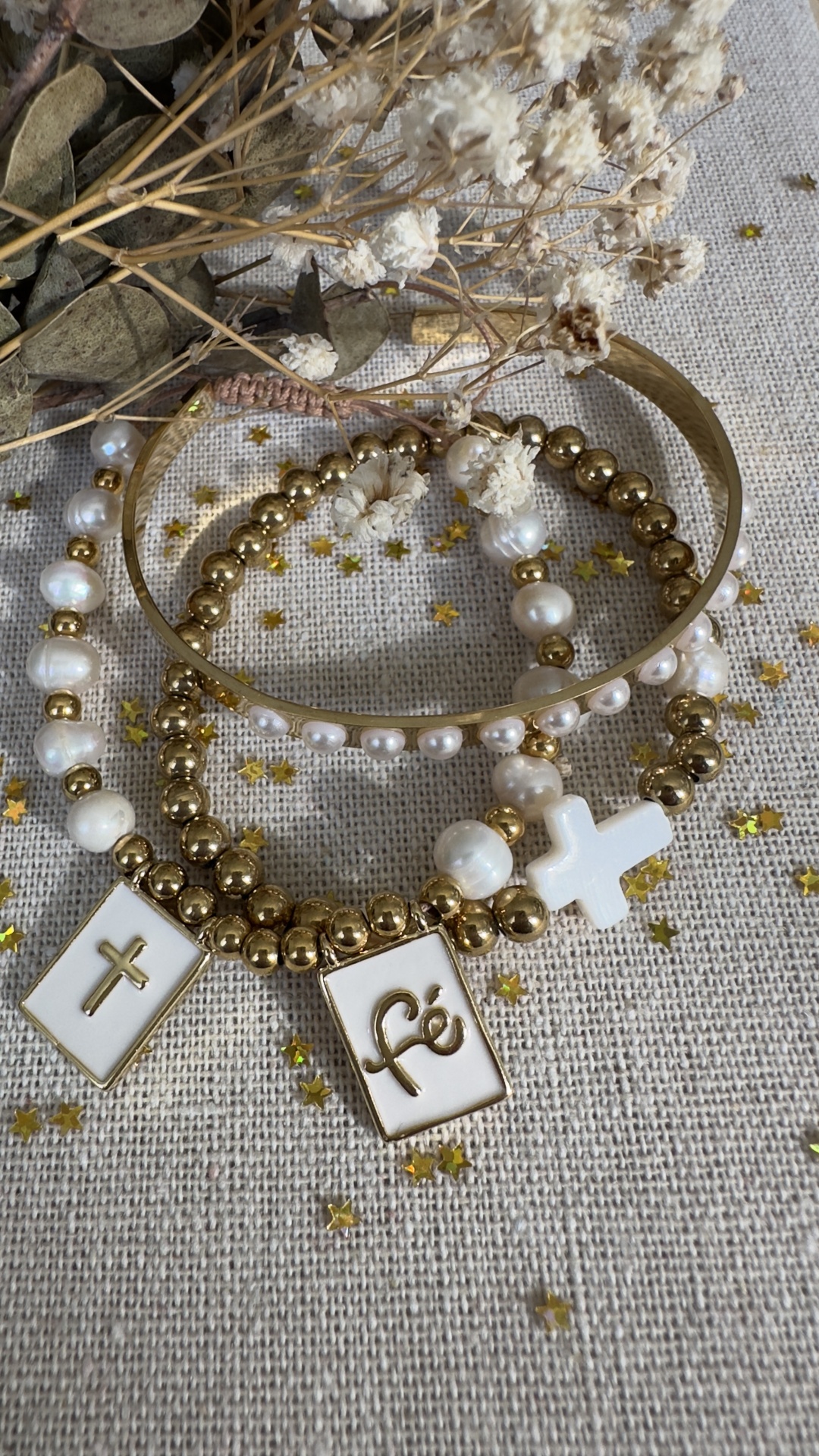 Pulseira “Fé” 10,00 € Desconto de %. Partilhar Modelos Fé Perolas Cruz Conjunto Comprar Contactar Três pulseiras ajustáveis, cheias de luz, boas vibes e aquele toque chic que só a Conchitas tem. Podem ser usadas juntas, separadas, misturadas, emprestadas à amiga (ou não 😌). Tags • pulseira fé • pulseiras femininas • pul