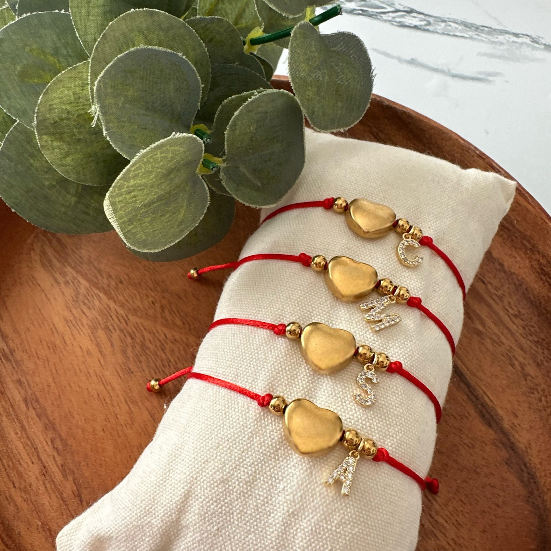 ✨ Fio vermelho ajustável – para usar na mão esquerda, lado que conecta com o coração ✨ Inicial cravejada de zircónias – um toque pessoal e único ✨ Coração dourado – símbolo de amor-próprio e conexão ✨ Ideal como presente cheio de intenção ou amuleto pessoal ✨ Feita à mão com significado