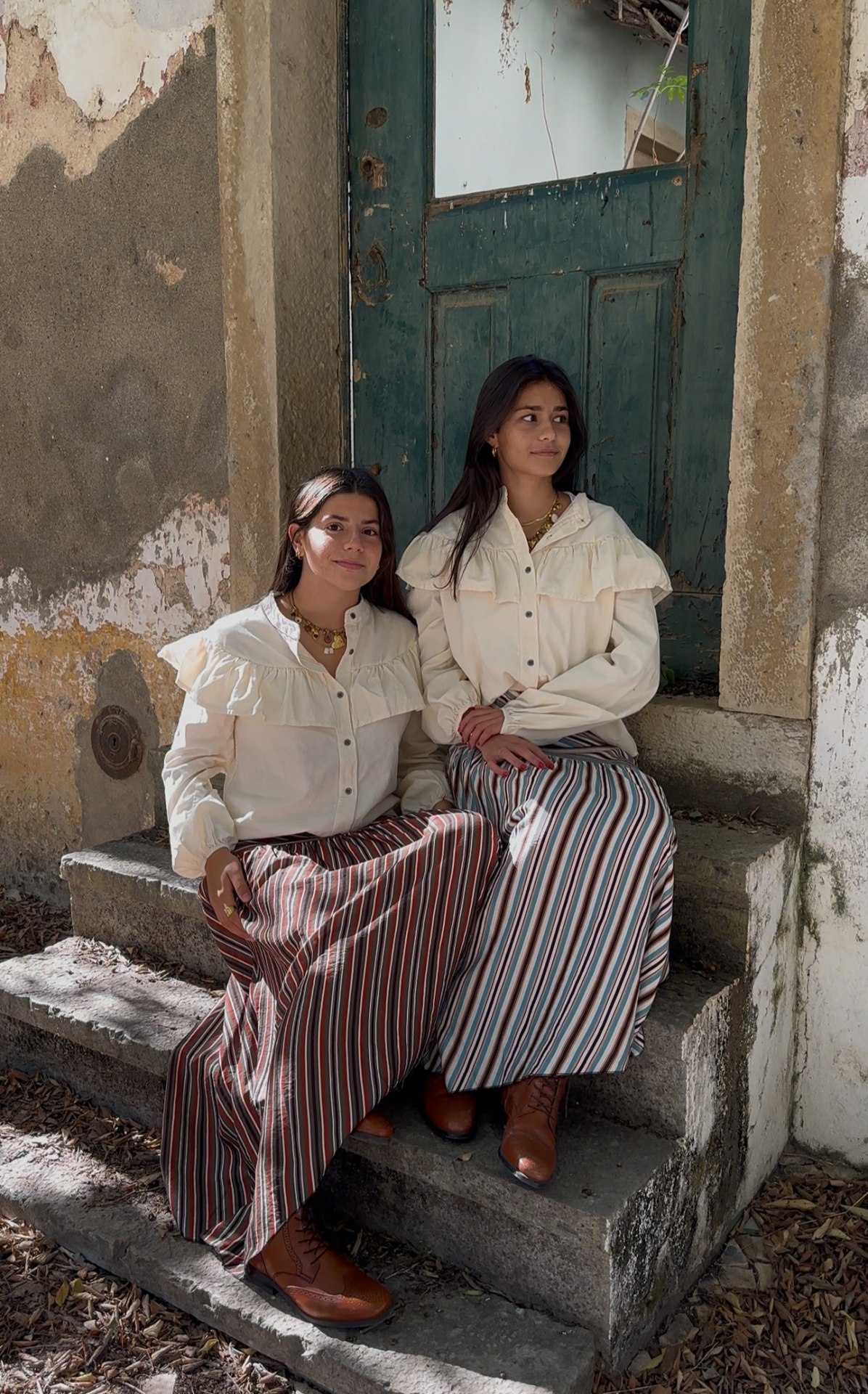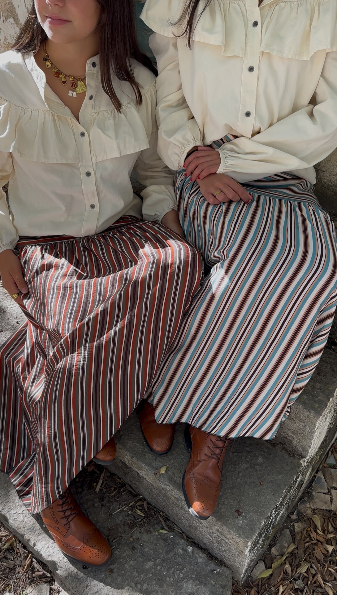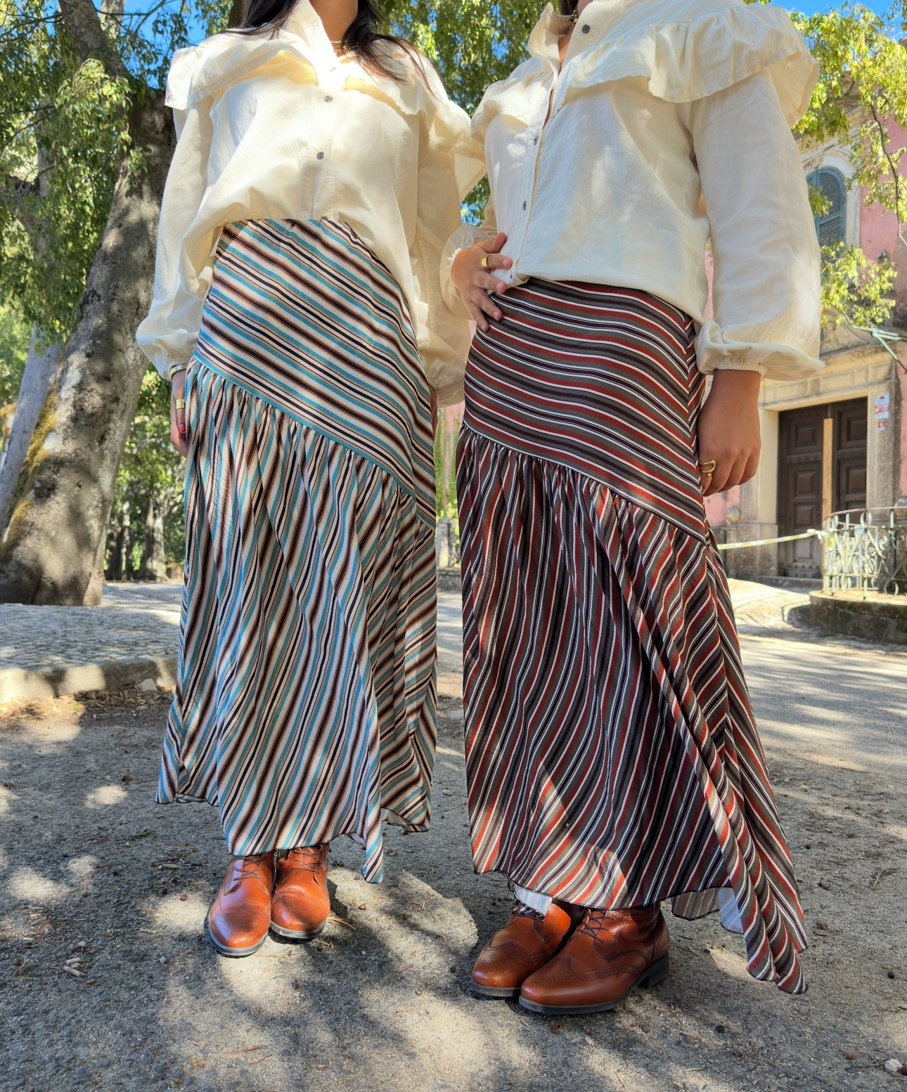 Saia "Ritinha" 20,00 € Desconto de %. Partilhar Cor verde seco/ laranja azul/ castanho Comprar Contactar A saia Rita tem riscas lindas e um corte fluido que veste super bem. Simplesmente PERFEITA. Um look bonito sem esforço! Tags look casual elegantesaia bohomoda femininaConchitas storesaia fluidasaia longasaia riscassaia rita